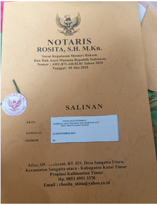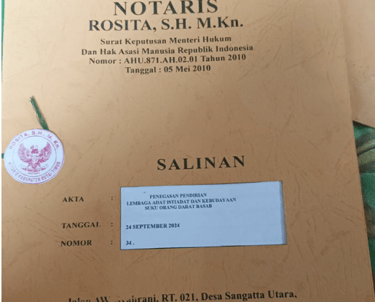 Akta Notaris : Pengesahan Pendirian Lembaga Adat Istiadat dan Kebudayaan Suku Orang Darat Basab